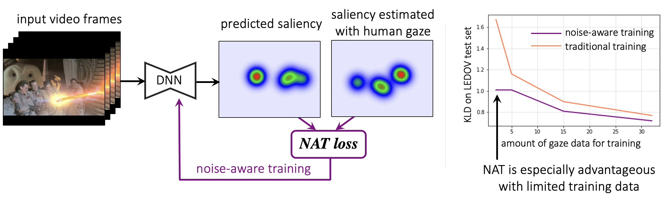This work improves video saliency prediction by introducing a noise-aware training framework that accounts for frame-specific uncertainty in gaze-derived saliency maps, helping prevent overfitting to noisy supervision. It is particularly effective when observer data is limited, and is supported by a new video game saliency dataset with rich temporal structure and multiple gaze attractors per frame.